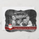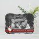 Um design de cartão fotográfico moderno de Natal com a foto da sua família enchendo o rosto do cartão e convertido automaticamente em preto e branco. Divertido Papai Noel decora com banda de texto vermelho escuro para suas palavras.