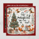 Design personalizável e acolhedora, com a frase "É aquela época mágica do ano!" cercada por ilustrações festivas, incluindo raposas, robins, uma árvore de Natal decorada, morangos vermelhos e sotaques sazonais. Troque a foto no verso e o texto e torne-a sua.