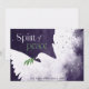 Estes cartões de Natal planos de 7" x 5" apresentam uma pomba abstrata em tons de roxo com um ramo de oliveira no bico e a saudação "Espírito de paz", em verde e cinza claro. Personalize com o nome da sua família e ano.