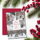 This romantic couple Merry Christmas card features a beautiful 5 wedding photo collage on a white background with gorgeous red cursive typography. This newlywed photograph holiday card features five pictures and a red back.