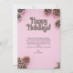Cartão de férias super fofo rosa com pinhas nevadas. Totalmente personalizável!