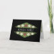 Um Cartão de Natal floral, chique, com balsas de Rosas de Natal vermelho e branco, Holly e Ivy sobre fundo negro e a saudação francesa "Joyeux Noel" em na moda, em letras modernas, em branco. De um design pintado à mão por Judy Adamson. Sinta-se à vontade para adicionar seu próprio texto de dentro.