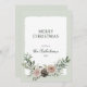 Rosas e Pine Cones Cartão de Cartões de natal Greenery de Natal... Sobreposto a um fundo de delicado verde pastel, está um clássico quadro branco de borda dobrada, contendo seu cartões de natal sobre um buquê de rosas cor-de-rosa, cones de pínus e botânicos de Natal. Exemplo de texto diz: "Feliz Natal com amor aos Robertsons 2023." Todo texto pode ser revisado com suas próprias informações sobre o modelo de personalização.
