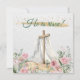 Celebre o milagre da Páscoa deste ano com este cartão Ele Ressuscitou. Uma ótima oportunidade para se atualizar com todos os seus amigos e familiares. Arte em aquarela lindamente pintada com rosas cor de rosa e folhagem de eucalipto. Cruz de madeira com mortalha branca proclamando Jesus ressuscitou. Acentos de brilho dourado e rosa. Tipografia em letra cursiva clássica.
