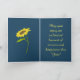 Envie bons votos neste ano com este cartão de saudação de Rosh Hashanah. Exibindo um adorável design de girassol na capa frontal, o fundo é um cativante fundo azul escuro. Há uma bênção calorosa dentro do cartão para o Ano Novo Judaico. Encomende hoje o seu cartão de saudação de Rosh Hashanah!
