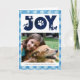 Celebre o Feriado com este cartão com fotos chico, fofo e adorável e minimalista com seu animal de estimação apresentando as patas de cachorro " JOY " em um padrão de flocos de neve em fundo azul-bebê. Abaixo, a foto apresenta sua mensagem de saudação personalizada e seus nomes e nomes de cachorro na tipografia moderna. Feliz feriados e Feliz ano novo!