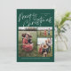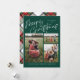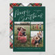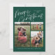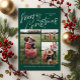 Carta de Férias de Xadrez de Natal Verde - Script 3 Foto de Natal Feliz - apresenta um roteiro de caligrafia moderno na frente, juntamente com três fotos, e uma xadrez de Natal festiva no verso.