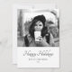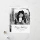 Cartão de Natal personalizado moderno e elegante. O cartão segue uma paleta de cores em branco, cinza e preto. O desejo de boas festas, a sua nota pessoal e o número do ano estão escritos em uma fonte preta da moda. Insira a sua foto favorita no modelo na frente e no verso - a foto em preto e branco combina muito bem com o design. Você pode adicionar uma ou duas fotos diferentes - a foto no verso é um close. Personalize este cartão com o seu nome e número do ano. É um ótimo design para solteiros, namorado, namorada, família, casal,...