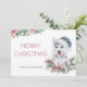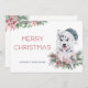 Um belo cartão com um cenário pacífico com um cão Rouco giro enquadrado por folhas e verde. Perfeito por enviar saudações da temporada a clientes, funcionários e a todos na sua lista. A frente dos cartões é "Feliz Natal" e o nome da sua empresa. A parte traseira do cartão apresenta a sua mensagem de feriado personalizada. Celebre a estação com este cartão elegante de Cherry Lane Designs!
