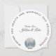 Cartão de Natal único com uma cena de floresta branca de inverno com veado, juntamente com o Feliz Natal e design de feriado de Feliz ano novo, em um cartão ROUND em formato único! Edite seu nome no verso e o ano atual na frente.