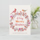 Família rústica de inspiração tradicional ou cartão de Natal de negócios com uma cor d'água doce, vermelho-burgundy, roxo, rosa e borrado cor-de-laranja, com folhagem e dois pássaros - um cardeal e um pãozinho - e um roteiro de tipografia moderno estilo "Um Natal Muito Feliz". +++++++++ Personalize-o com três linhas de desejos e seu nome! +++++++++ Você pode adicionar seu texto pessoal de escrita manual e sua assinatura no sentido inverso.