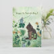 Esta Rua bonito. Cartão de Férias do Dia de Patrick mostra um gato bonito olhando para um rato sentado numa enorme licença de shamrock e outro rato está a observá-los num fundo maravilhosamente trabalhado com folhas, flores, e montes de shamrocks e abelhas pilosas voadoras. O outro lado tem um mouse no mesmo cenário. Divirta-se com este cartão, você pode fazer o pedido no impressão ou baixá-lo. Você pode personalizar a saudação no topo, e mudá-la para uma saudação diferente.
