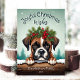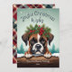 Este adorável cartão de cartões de natal apresenta uma ilustração fofinha de Cachorro-Boxer vestindo uma coroa festiva de colly, pinheiro e bagas, com flocos de neve suavemente caindo contra um fundo da Floresta de Pinheiros Neves Russos. O Boxer está espiando o registro de neve para dizer olá! O texto brincalhão "Desejos Felizes de Natal" adiciona uma saudação sazonal quente, e pode ser personalizado como quiser. O verso é decorado com uma verificação de xadrez clássica, adicionando um toque tradicional ao design geral. Este cartão bonito e brincalhão é perfeito para enviar alegria de férias para a família e amigos, e o nome e data personalizáveis fazem dele uma marca personalizada.