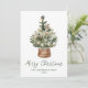 Share holiday warmth with this rustic watercolor Christmas tree holiday card. The design features a hand-painted evergreen tree adorned with neutral blush, champagne, green, and golden caramel-toned ornaments accented by soft white lights, all nestled in a woven wicker basket. “Merry Christmas” is displayed below in green handwritten script, with your family name and year shown underneath. Set against a white background, this non-photo design offers an elegant, cozy farmhouse look. The back includes space for a personal message.