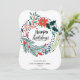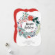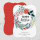 Cartão De Festividades Rustic Green Red Poinsettia Floral Wreath Simples