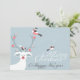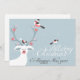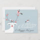 Este cartão de feriado bonito apresenta um fundo azul pálido com uma rena engraçada decorada com ornamentos e aves coloridas. O texto diz "Feliz Natal e Feliz ano novo". Personalize as costas com seu nome e uma saudação de despedida.