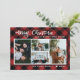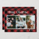 Mande os melhores desejos de Natal e Ano Novo para a sua família com este cartão festivo e decorativo de férias da família. Design apresenta 4 das suas fotografias favoritas. Mensagem personalizável de ano novo, nome da família e ano em um cheque de búfalo preto vermelho rústico e muito tradicional também conhecido como padrão de xadrez de lumberjack na frente e no verso do cartão. Isso traz um sentimento acolhedor para a temporada de festas. Feliz Natal! Crédito da foto: Nathan Dumlao da Unsplash! Obrigado.