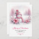 Celebrate the season with this cute watercolor pink coquette snowman kids Christmas card, set in a magical snowy forest. Editable text lets you personalize instantly, and the digital download provides an easy, fast, and festive holiday greeting.