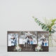 Um cartão com fotos de feriado rústico para desejar aos amigos e à família uma feliz temporada de férias. O design rústico e moderno apresenta uma colagem de três fotos personalizáveis em um fundo de madeira com um delicado efeito de neve no topo e no texto branco do roteiro. Duas imagens aquáticas de plantas de Natal decoram o cartão. Pressione o botão de personalização para torná-lo realmente exclusivo. Você ficará encantado!