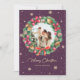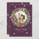 Cartão De Festividades Rustic Wreath Purple Foto Dourada Natal