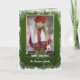 Cartão de férias único, clássico, de moda, bonito e decorativo, com um bonito padrão de coroa floral vermelho escuro e verde em forma de casaco. Com espaço para personalizar ou personalizar com uma foto e nomes (ou nome da família) de sua escolha. E um poema de saudação de estação na dentro do cartão, num estilo rústico de campo, caseiro de fazenda, caseiro de fazenda, padrão de textura de planks de madeira.