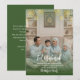 Send a fresh and modern greeting with this sage green Eid Mubarak card. Decorated with intricate gold geometric mandalas and a clean white script, this design offers a peaceful and stylish aesthetic. The bottom-weighted color fade allows your family photo to blend seamlessly into the design. Fully customizable for a unique holiday message.