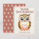 Cartão de ouriço clássico e fofo para o Dia dos Namorados na sala de aula das crianças. Namorado, você é o mais doce! Fácil personalização com o nome da criança. Coruja rosa e marrom e design de coração.