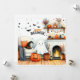 Cartão De Festividades Sala de estar feliz no Halloween com fantasma