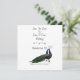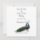 Este casamento, salvar o cartão de data, tem um design simples e elegante. Ideal para anunciar seu dia especial para familiares e amigos. Possui um par de pavões tocados no telhado. As cores vibrantes de suas penas se destacam contra o fundo mudo.