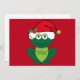 Um sapo de Natal bonito em um adorável chapéu vermelho de Papai Noel com sinos de jingle e mistério em um legal cartão vermelho de feriado. Este presente engraçado para crianças de férias com um sorridente animal de rã verde me faz feliz e cheio de alegria de Natal.