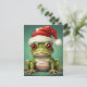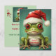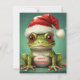 Envie saudações alegres de feriados com este cartão de Natal festivo. Com um adorável sapo verde usando um chapéu clássico de Papai Noel, este design caprichoso é perfeito para enviar uma mensagem alegre a amigos e familiares. Personalize o texto com sua própria saudação de temporada para criar um presente único.