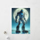 O Sasquatch está debaixo de uma lua de cheio rodeada por montanhas, revelando um exoesqueleto de titânio de circuitos eletrônicos e luzes LED...
