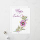 Comemore a Páscoa com este cartão de saudação, pintado à mão, com um design floral tradicional. Esta trabalho de arte destaca um arranjo gracioso de flores roxas com sotaques castanhos ricos e uma folhagem verde-luxuosa, incorporando a beleza do primavera.