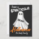 Cartão de Feriado Fantasma Gachatular de Saudação Fantasma Um cartão de Dia das Bruxas divertido, com um fantasma animado de desenho animado, com uma inscrição "BOO!" ousada no seu peito. Contra um dramático pano de fundo preto, os pop design com tipografia química e cores festivas. Os textos de cima e de baixo criam uma mensagem sazonal viva, enquanto a área do nome da família é totalmente personalizável — perfeita para adicionar um toque pessoal à sua saudação assombrada. Ideal para espalhar alegria assustadora com charme e talento.