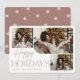 Nosso design de cartão festivo e elegante é a maneira perfeita de mostrar três de suas fotos de família favoritas. Design horizontal ou orientada para a paisagem apresenta "Felizes Feriados" na tipografia de terracotta de tons de terra e escrita à mão, com seu nome de família embaixo.