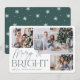 Nosso design de cartão festivo e elegante é a maneira perfeita de mostrar três de suas fotos de família favoritas. Design horizontal ou orientada para a paisagem apresenta "Feliz e Brilho" na tipografia verde e no script com letra manual, com o seu nome de família por baixo.