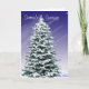Cartão de saudação simples e elegante de Season, com uma bela árvore evergreen com neve em seus arbustos contra um céu azul de meia-noite de inverno. O cartão de saudação perfeito para todos os seus amigos e colegas, de crentes de todas as crenças a não crentes, desejando-lhes paz, alegria e prosperidade.