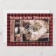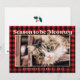 O design é composto por um padrão xadrez/tartan vermelho e preto. Adicione uma foto personalizada sua com seu gato de estimação. A foto é adornada acima com saudações douradas únicas - "Temporada para ser Meowwy"
