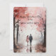 Uma imagem bonita de um casal caminhando por uma trilha entre árvores.