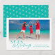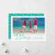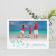 Do Natal na praia para o seu feriado favorito na costa, este cartão “Mares & Saudações” é uma maneira legal de desejar aos amigos e familiares um Feliz Natal tropical! Apresenta sua foto favorita da praia, saudação personalizada e nome. O verso do cartão tem um divertido padrão de estrelas-do-mar.