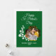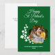 Spread the joy this season with this vibrant emerald green St. Patrick's Day card featuring a whimsical scatter of white shamrocks and a unique clover-shaped photo frame. This elegantly designed template combines classic holiday charm with a modern personal touch, making it the perfect keepsake for 2026.
