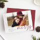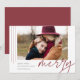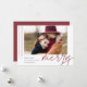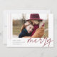 Um cartão de férias moderno e elegante com uma fotografia horizontal ou orientada à paisagem, acentuado com faixas verticais finas. A "Feliz" aparece por baixo da tipografia casual escrita com letra de mão. Personalize com seu cartões de natal personalizado, seu nome de família e o ano. Uma escolha moderna e moderna minimalista para os cartões de Natal 2021.