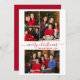 Modern Trendy Calliographic 4 Photo Family Collage Merry Christmas Holiday Card - Red