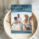 Compartilhe saudações a Chanucá com amigos e familiares com nosso elegante e moderno cartão com fotos Chanucá, com sua foto vertical ou quadrada favorita. Sobreposição de bandas de azul-lacre escuro adornam a parte superior e inferior do cartão, com "Happy Hanukkah" na tipografia moderna, escrita à mão. Personalize com seu nome de família ou saudação personalizada.