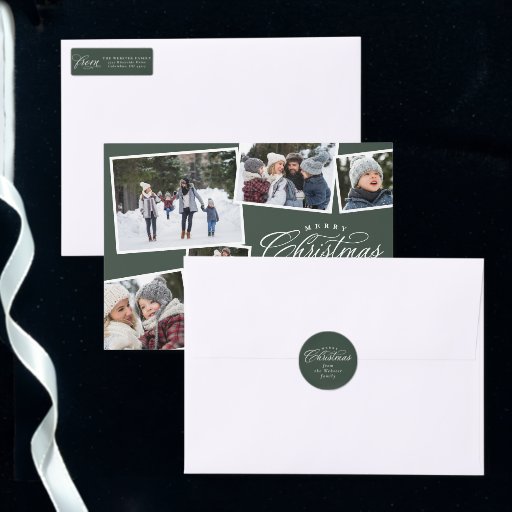 "Feriados Felizes" em um tratamento elegante senta-se no topo de uma foto vertical de solteiro. Este cartão clássico é a forma perfeita de enviar Cartões de natal para amigos e familiares. O dorso é um marrom festivo manchado com um padrão de neve. A cor pode ser alterada clicando em "personalizar mais".