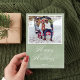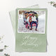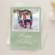 Este design apresenta uma saudação Feliz Feriados com espaço para uma foto, mostrando um elegante fundo de aquarela verde. Acentuado com a tipografia da escrita e a caligrafia graciosa, este simples layout minimalista cria um cartão com fotos eterno e moderno de férias perfeito para compartilhar desejos sazonais quentes.