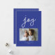 Cartão De Festividades Script Joy Azul Moderno Foto Personalizada