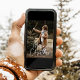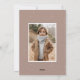 Cartões com fotos modernos de férias com sua foto vertical com "Feliz Natal", mostrados em um roteiro branco escrito à mão. Personalize o cartão fotográfico de Natal com seu nome de família e o ano. O cartão de feriado de fotos do solteiro é revertido para exibir uma foto adicional e um fundo marrom-mave com sutis pontos brancos.