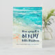 Quem não adoraria um pouco de ar salgado e areia entre os dedos durante as festas? Envie para seus amigos e familiares seus Seas & Greetings com este cartão temático costeiro que apresenta ondas do oceano turquesa em aquarela, areia, estrelas-do-mar e uma legenda "Tenha um Natal praiano" em azul marinho. A linha inferior do texto pode ser personalizada. Arte por KL Stock
