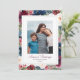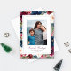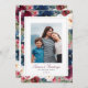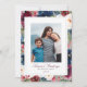 O design de um cartão de Natal Elegante e moderno de inverno "Saudações da Época" apresenta uma foto horizontal moldada por um padrão floral de cor d'água ricamente colorido com Bordéus / vermelho burgundy, azul marinho, rosa e flores de creme com fundo de cinza de platina. A parte traseira da placa inclui uma segunda foto em forma quadrada e texto personalizado adicional que pode ser personalizado.